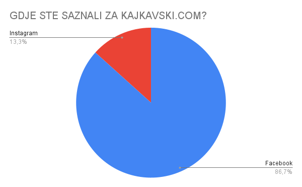 Na ovo pitanje 86,7% kupaca je odgovorilo da su za nas saznali na Facebook-u, a 13,3% na Instagram-u. Ponuđene opcije bile su još Google i TikTok, ali ovi odgovori nisu bili ponuđeni od kupaca.
