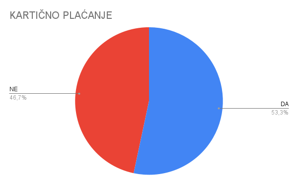 Na pitanje da li bi koristili kartično plaćanje ako ga uvedemo, 53,3% kupaca izjasnilo se je da bi, a 46,7 da ne bi.