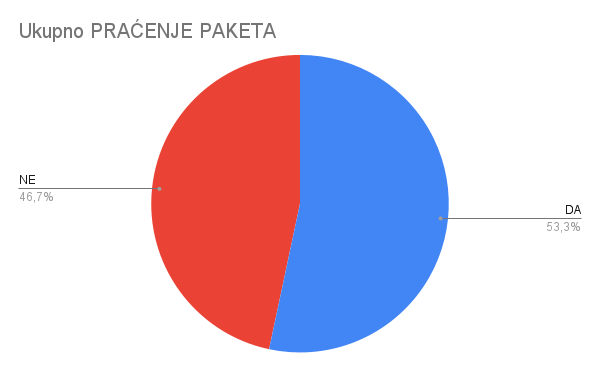 U ovom pitanju kupce smo pitali da li su koristili mogućnost praćenja pošiljke. Kao što možemo vidjeti iz priloženog grafikona, 53,3% kupaca koristilo je tu mogućnost, a 46,7% nije.