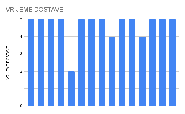 Rok isporuke naveden je kao 10 radnih dana, ali nastojimo, te u velikoj većini slučajeva i uspijevamo pakete isporučiti u nekoliko dana. Na ovom pitanju također smo dobili prosječnu ocjenu 4,6.