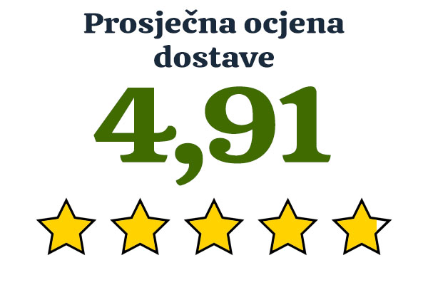 - GLS dostava: 42 kupca ocijenila su uslugu ocjenom 5, a 4 ocjenom 4. Prosječna ocjena: 4,91