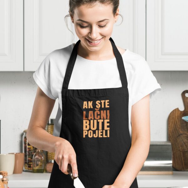 Tražite li savršen dodatak za vaše kulinarske avanture? Pregača s natpisom “Ak ste lačni bute pojeli” je upravo ono što trebate! Ova šaljiva pregača donosi dozu humora u vašu kuhinju, bez obzira jeste li profesionalni kuhar ili samo amaterski zaljubljenik u kuhanje.